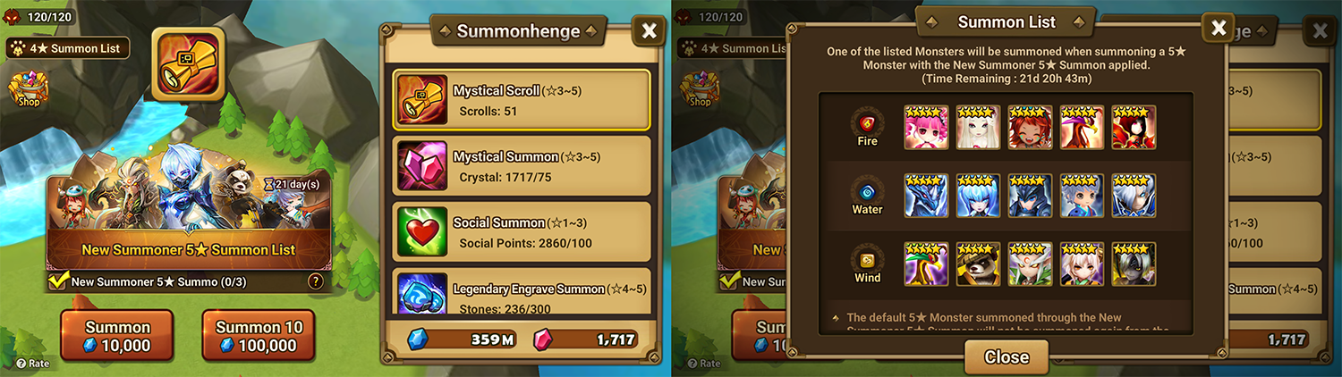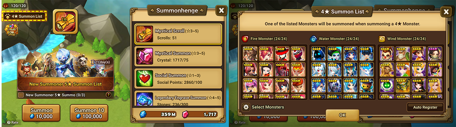 - This feature applies to summon methods that can summon default 4★ Fire/Water/Wind Monsters, such as Mystical Scrolls, Attribute Scrolls, and Legendary Scrolls.