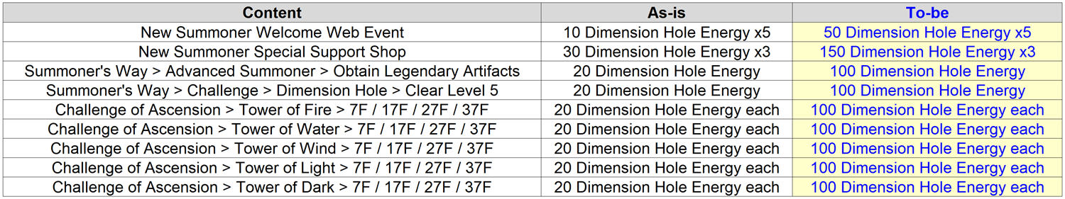 * The amount of Dimension Hole Energy rewarded in related content has been increased.