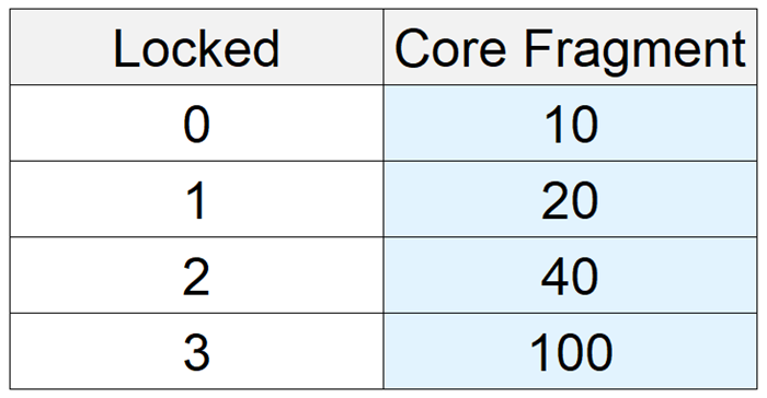 : The required number of Core Fragments varies by the number of locked sub properties:
