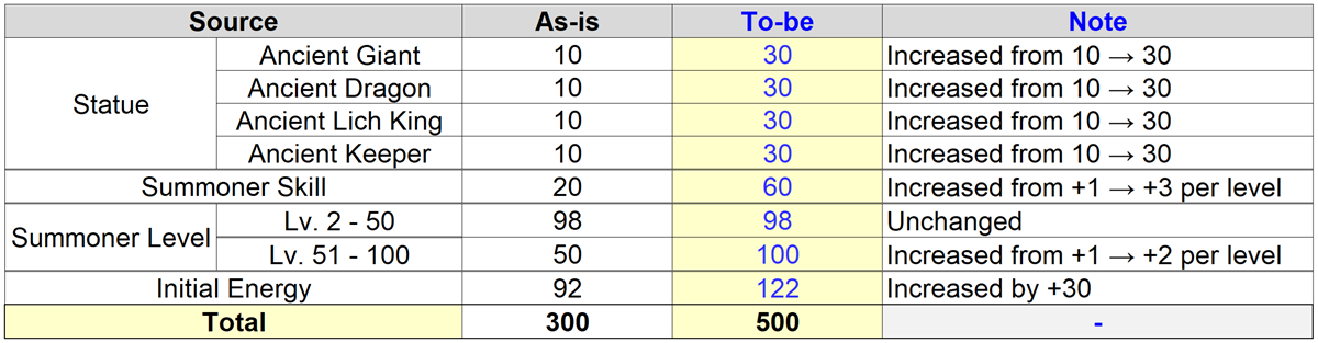 * With all Ancient Guardian Statues (Karzhan/Lumel/Sacreon) built, the total capacity increases to 1,150.