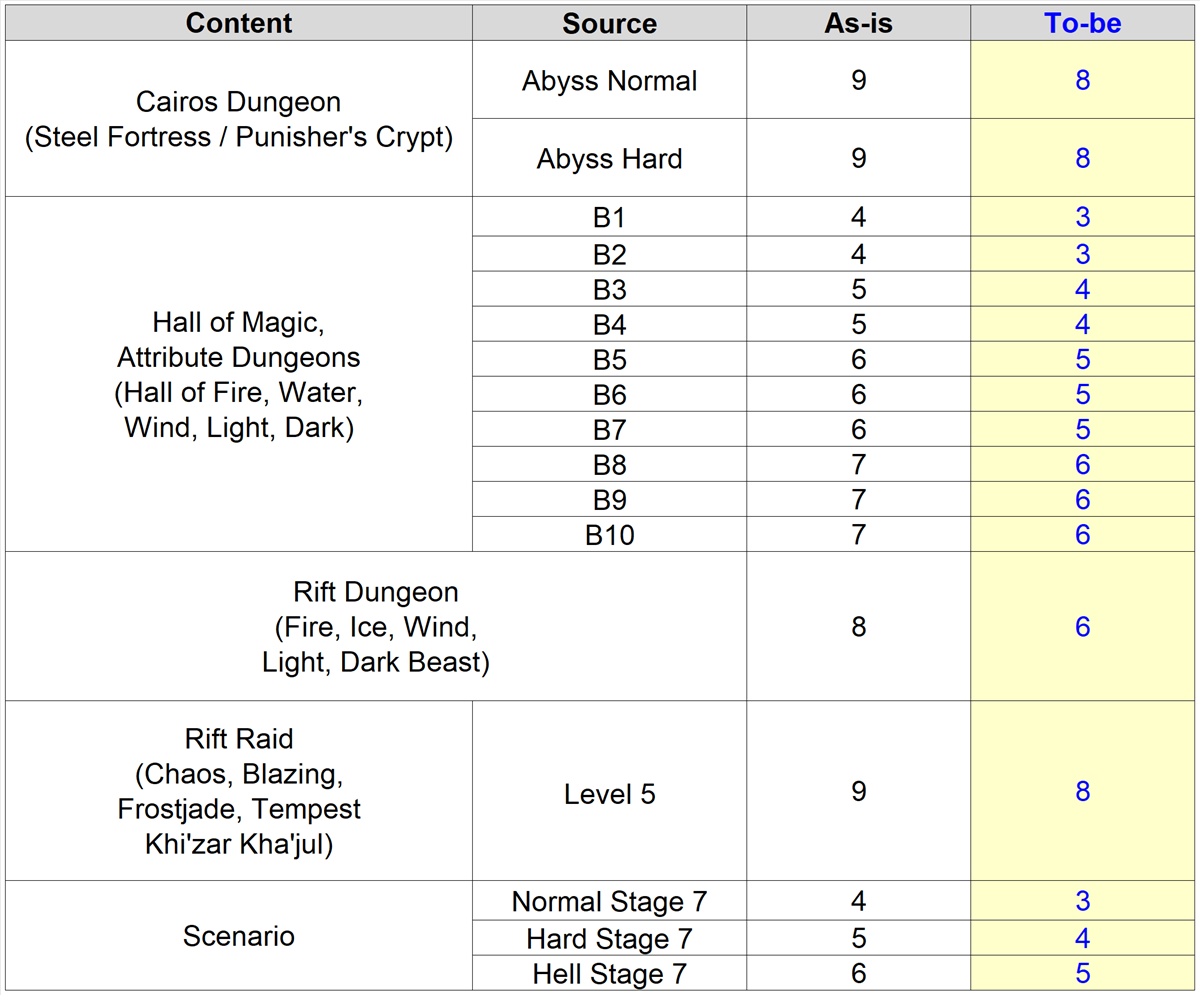 : 6★ Rare Ancient Runes will no longer drop from Dimension Dungeon Lv. 5, and the drop rates for 6★ Legend Ancient Runes have been increased by over 3x. The drop rates for Legend Ancient Gems and Grindstones have also been greatly increased.