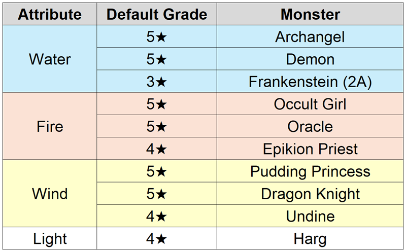 - A summon list composed of 15 default 5★ Fire/Water/Wind Monsters has been added.