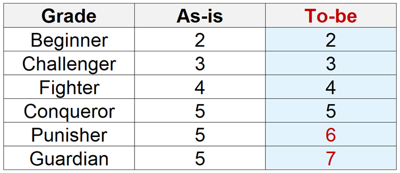 - Medal rewards granted upon victory for Punisher and Guardian grades will be increased.