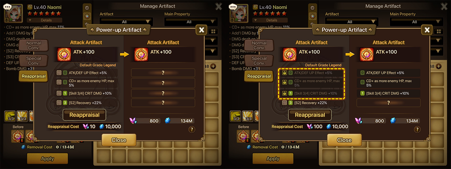 : Up to three sub properties can be locked, and locked ones retain both type and Power-up level.