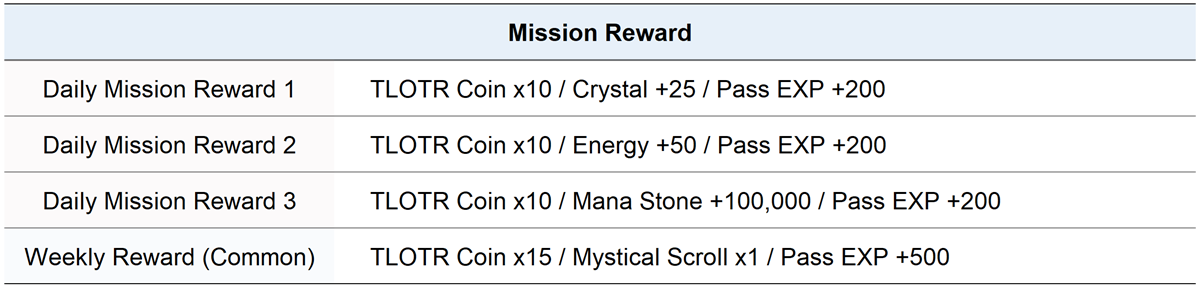 - You will receive three Daily Missions at 12:00 AM and five Weekly Missions every Monday (server time).