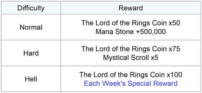 : The event for the week will end every Sunday at 11:59 PM (server time). Rewards will be sent via Inbox to Summoners who possess [Summoner's Ring].