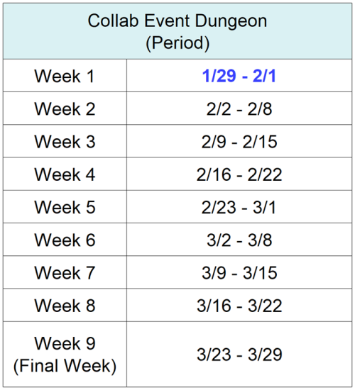 : Week 2 will begin on Feb. 2, 12:00 AM (server time), with the dungeon resetting every Monday at 12:00 AM (server time).