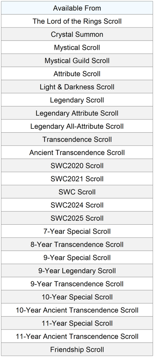 - [Blessing of Summon & Splendid Blessing of Summon] cannot be applied to The Lord of the Rings Scrolls.