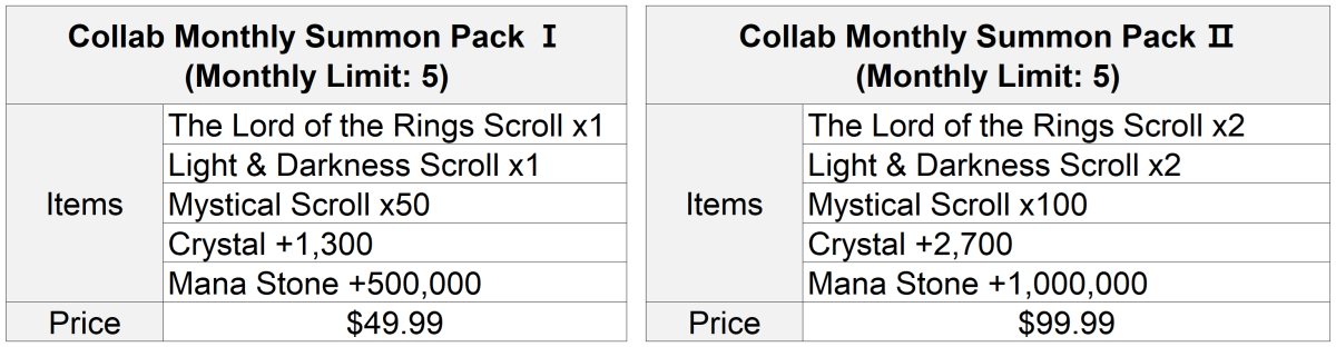 - It's an exclusive scroll that summons a default 4-5★ The Lord of the Rings Collab Character of all attributes (Water/Fire/Wind/Dark/Light).