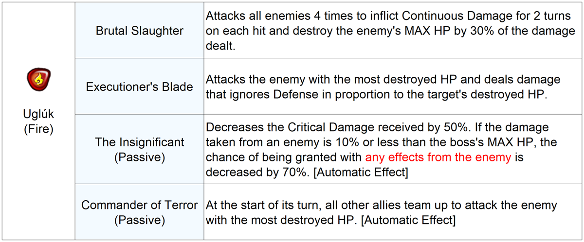 ※ Uglúk's skill details have changed from the details introduced in the Developer's Note. Thank you for your understanding.