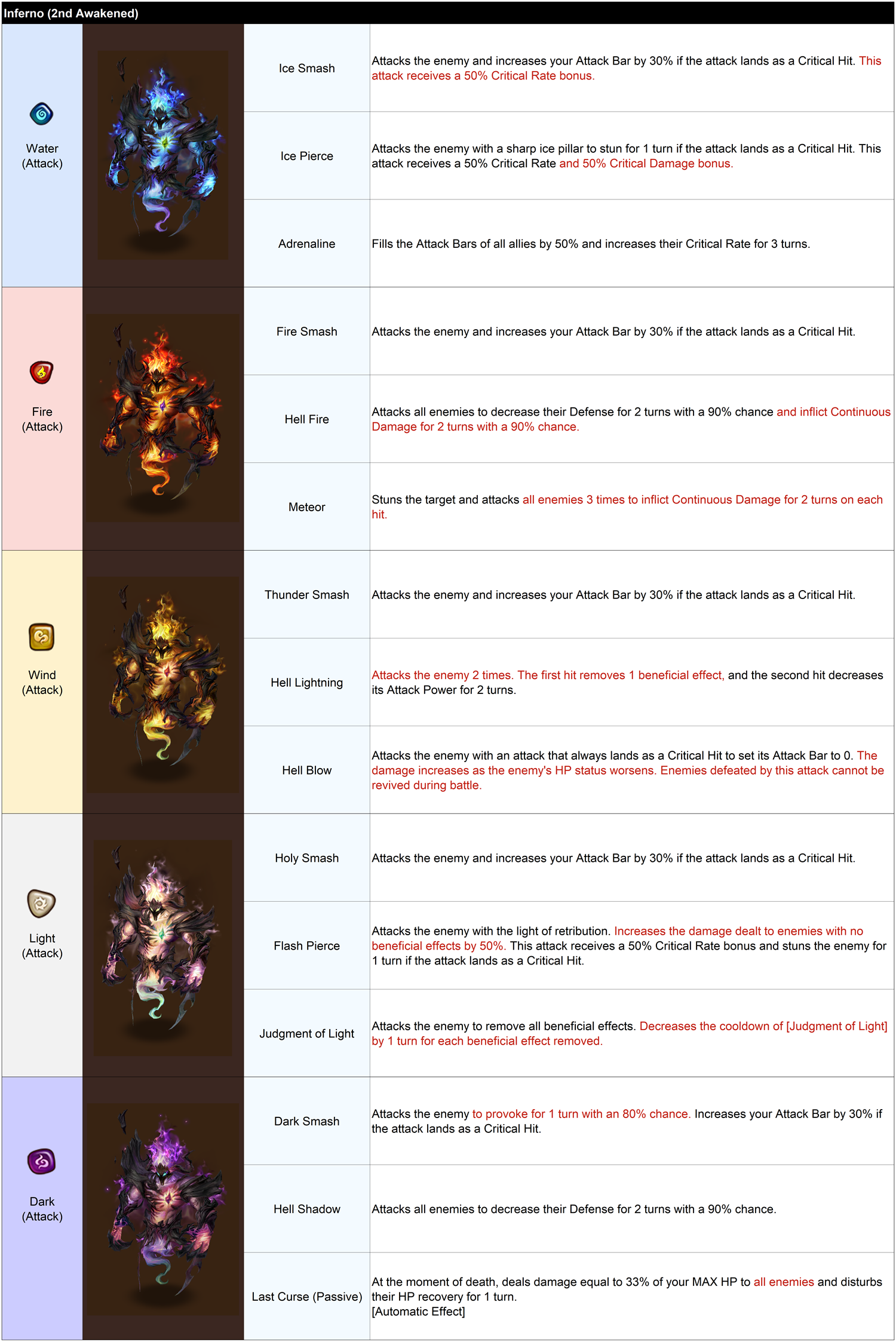 * In addition to the Secondary Awakening update, the base stats of Hellhound and Inferno have been adjusted as follows.
