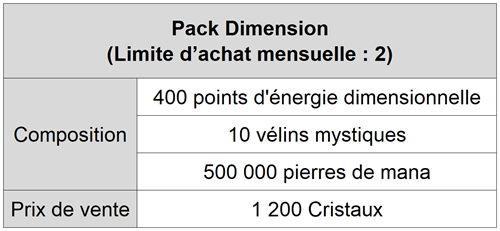 ▶ Ajout de nouveaux produits dans [Shop > Exclusif > Pack spécial] pour célébrer la mise à jour du Passage des dimensions !