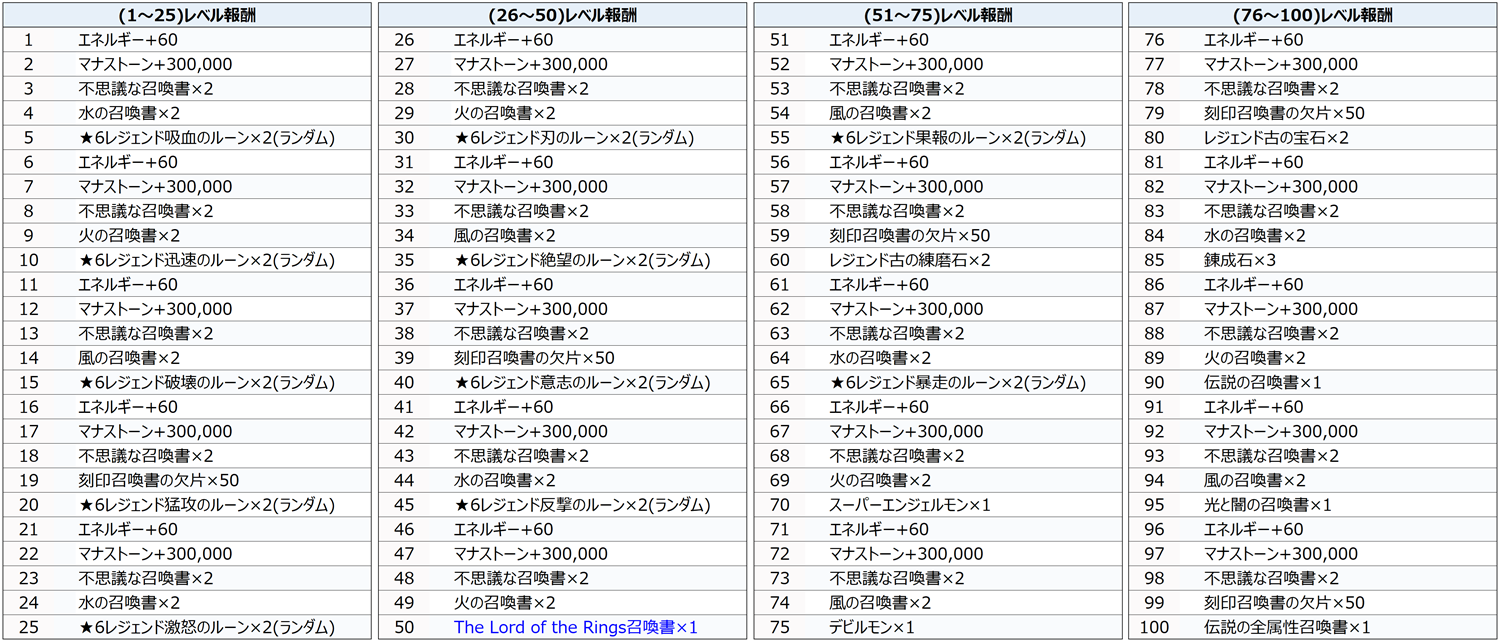 :毎週日曜日23:59にその週のイベントが終了し、終了した時点で【召喚士の指輪】を所持している召喚士のプレゼントボックスに報酬が届きます。
