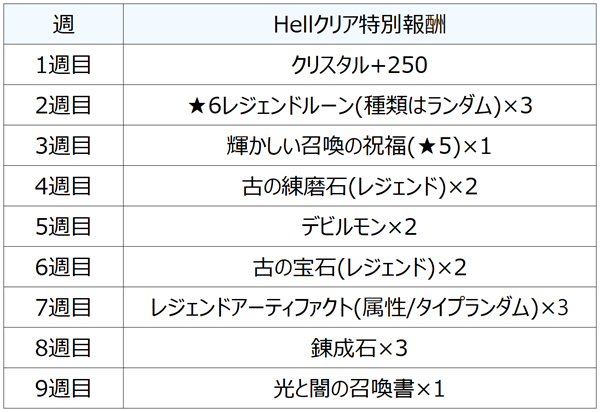 - Hellのボスをクリアすると週替わりの追加報酬を獲得できます。