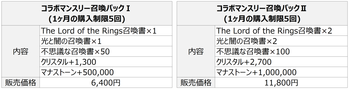 ‐ 『The Lord of the Rings』コラボキャラクターの召喚方法は以下の通りです。