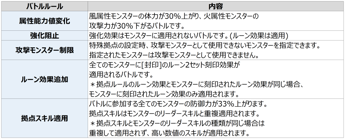 - 今シーズンの占領戦トーナメントに適用される特殊ルールに関しては、下の表をご覧ください。