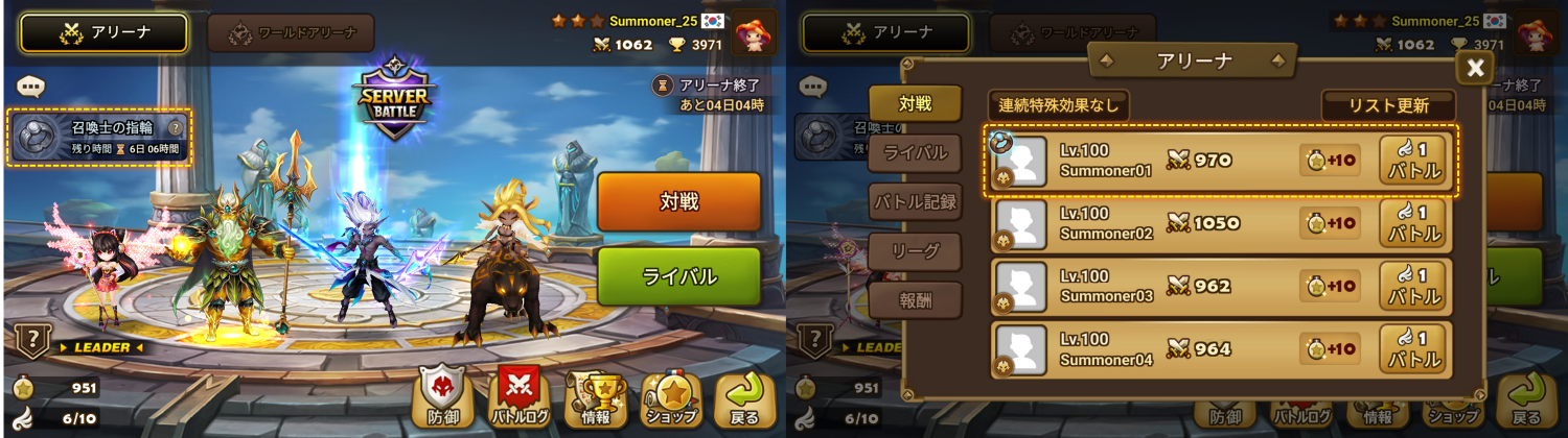 STEP 2. アリーナのバトルで【召喚士の指輪】を獲得