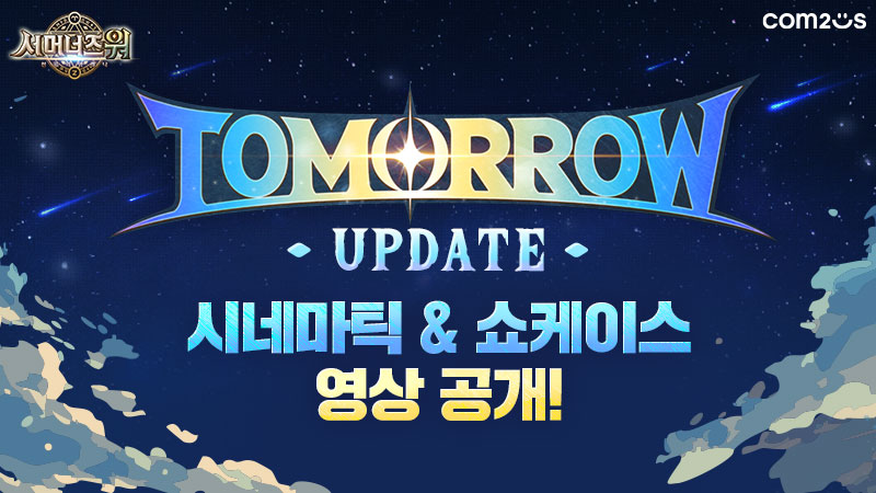 UPDATE 서머너즈 워 TOMORROW 업데이트 시네마틱 & 쇼케이스 영상 공개안녕하세요, GM 아이린입니다. 11월에 진행될 TOMORROW 업데이트에 대한 소환사 여러분들의 관심과 사랑에 진심으로 감사드립니다. 소환사님들의 많은 관심과 사랑에 보답드리고자, 이번 TOMORROW 업데이트 내용을 담은 [시네마틱 & 쇼케이스 영상]을 준비하였습니다. 먼저, TOMORROW 업데이트의 시네마틱 영상을 확인해보실까요?▶TOMORROW 업데이트 시네마틱 영상 시청하기◀시네마틱 영상을 시청하고나니 어떤 업데이트가 진행될지 더욱 설레는데요, 아래의 쇼케이스 영상에서는 [TOMORROW 업데이트에 대한 자세한 내용]과 [소환사님을 위한 쿠폰]도 확인하실 수 있으니 지금 바로 시청해보세요! ▶TOMORROW 업데이트 쇼케이스 영상 시청하기◀곧 찾아올 TOMORROW 업데이트에 대한 많은 관심 부탁드립니다.감사합니다.