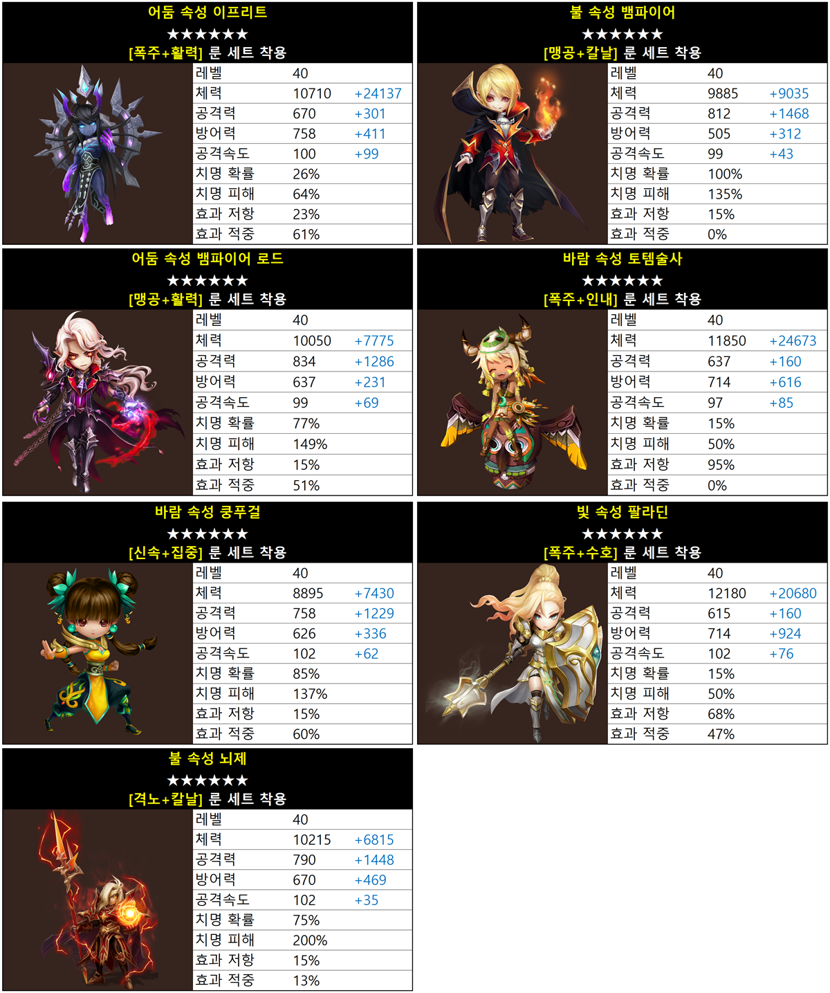 [6★/Lv.40/각성/모든 스킬 최대 레벨 업/룬 착용] 상태의