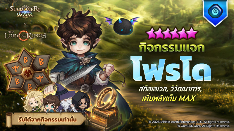 - รับตัวละครคอลแลบฯ The Lord of the Rings [โฟรโด (น้ำ) 5★ แท้] ในสภาพ [อัปสกิลครบถึงเลเวลสูงสุด, วิวัฒนาการ 6★, Lv. 40, ปลุกพลังแล้ว]!