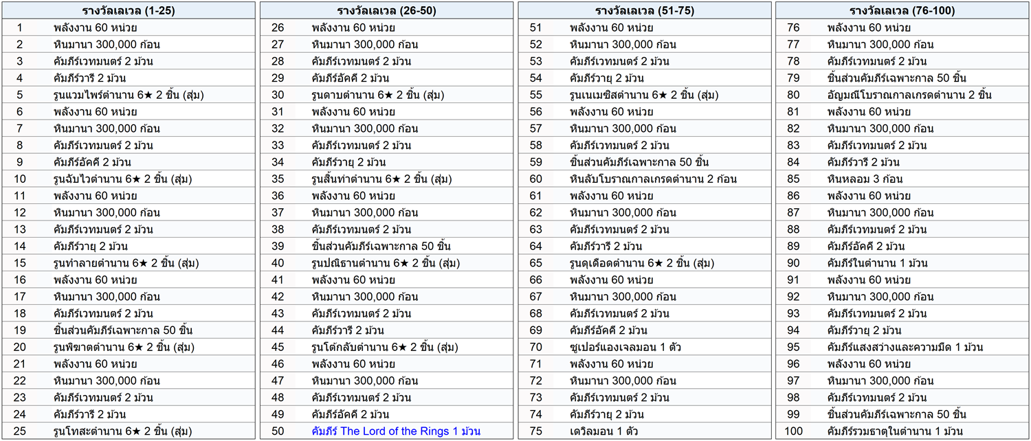 : คุณจะได้รับ EXP พาส +5,000 ทันทีเมื่อซื้อ และเลเวลพาสจะเพิ่มขึ้นตาม EXP สะสม