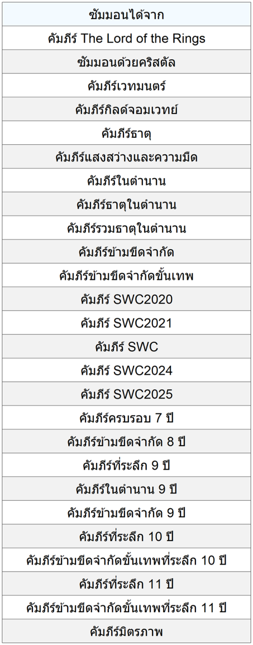 - ตัวละครคอลแลบฯ The Lord of the Rings สามารถซัมมอนได้ด้วยวิธีการดังต่อไปนี้