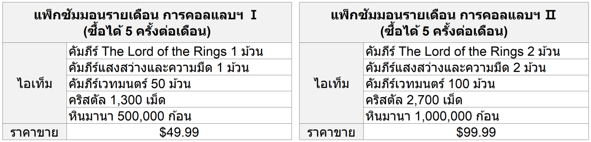 ▶ [ร้านค้า > ราคาพิเศษ > แพ็กพิเศษ] เพิ่มสินค้าใหม่ฉลองการอัปเดตคอลแลบฯ The Lord of the Rings