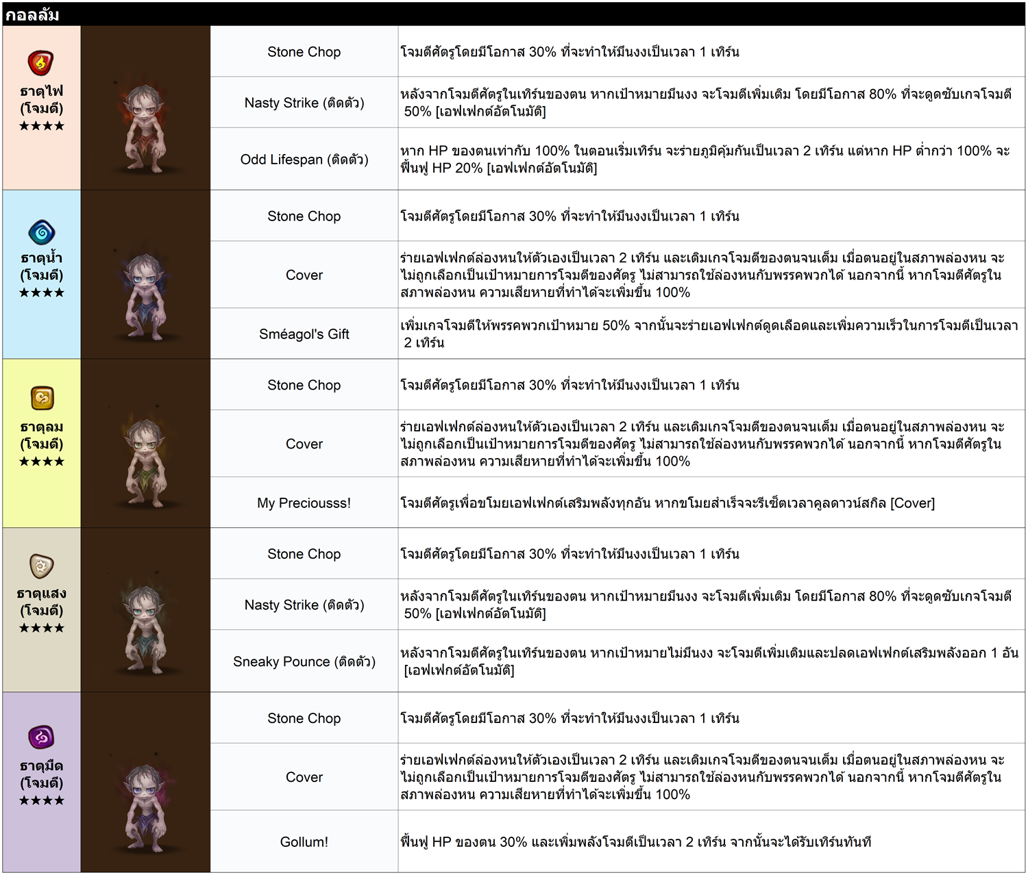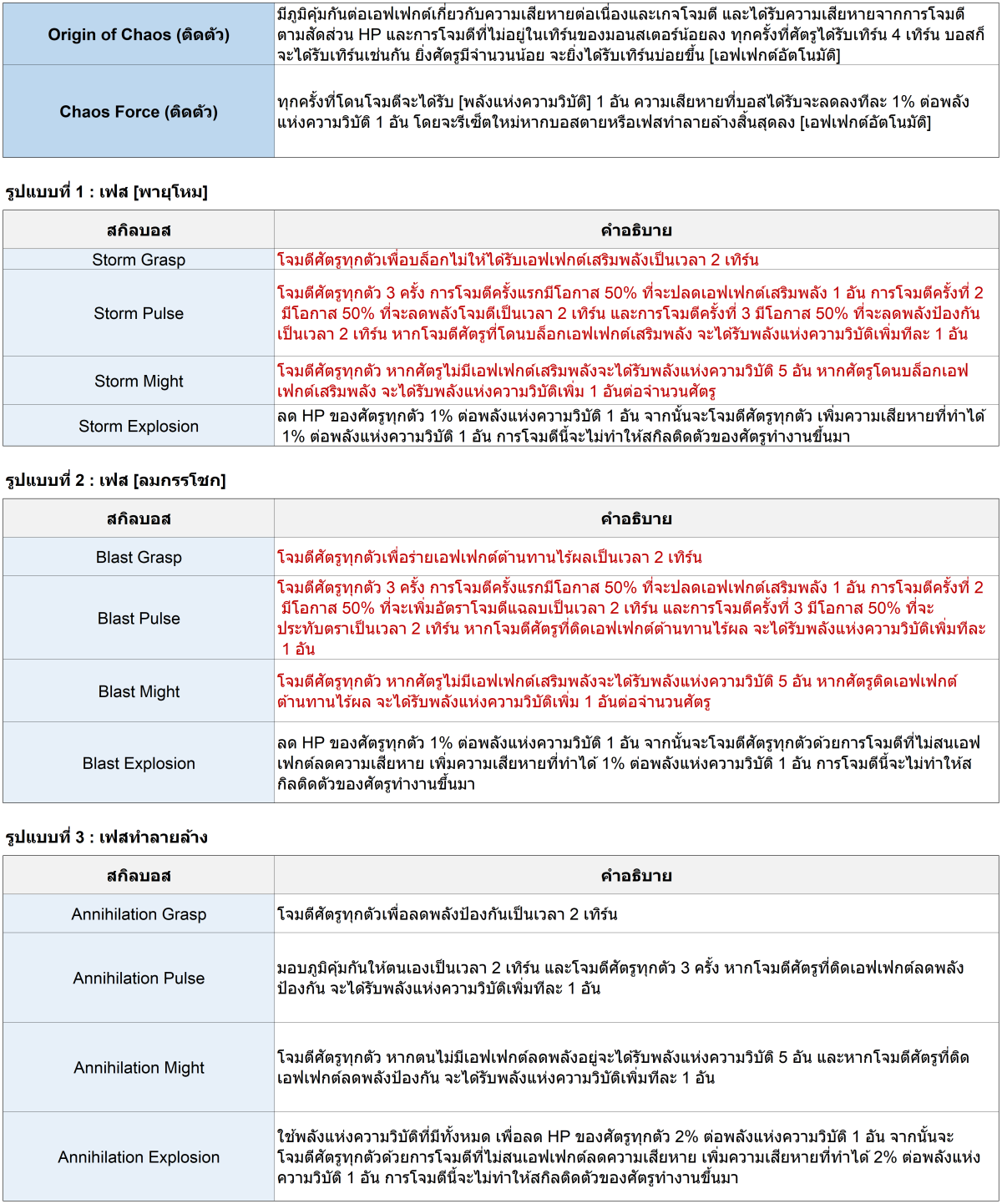 - บอสในวิหารแห่งความวิบัติเดือนกุมภาพันธ์เป็นบอสธาตุลม ดูสกิลของบอสได้ในตารางด้านล่างนี้
