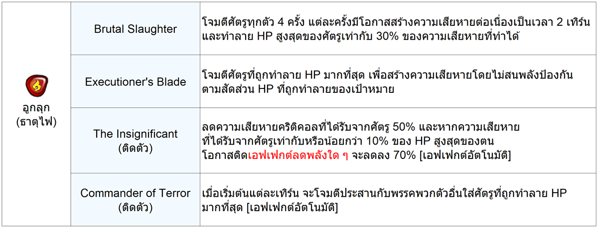 เปลี่ยนค่าสถานะ : ผู้บุกเบิก (ไฟ) เพิ่มความเร็วในการโจมตี 4 หน่วย