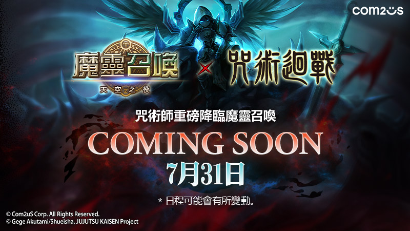 UPDATE 魔靈召喚聯名活動事前通知親愛的召喚師您好「領域展開」召喚師與咒術師的精采冒險之旅即將開展!7月31日![魔靈召喚 X 咒術迴戰]夢幻聯名火熱開跑!究竟咒術師們會以何種面貌登場天空之島?敬請多多關注。謝謝。