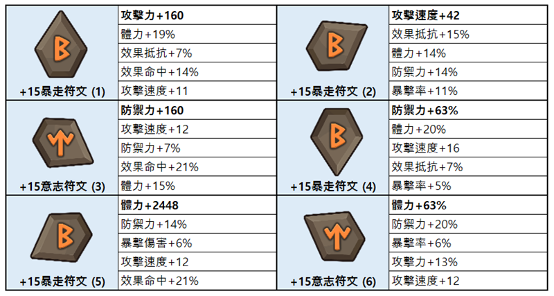 - [6星傳說級暴走+意志符文]套裝 (強化+15)