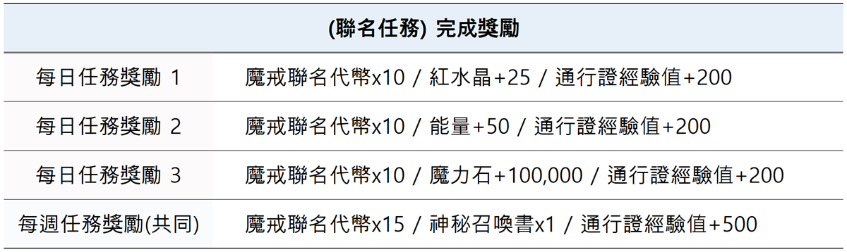 完成任務後,可獲得聯名通行證經驗值及各種豐富獎勵。