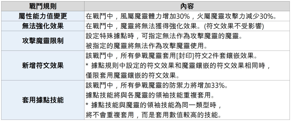 - 本賽季據點戰淘汰賽套用的特殊規則如下。