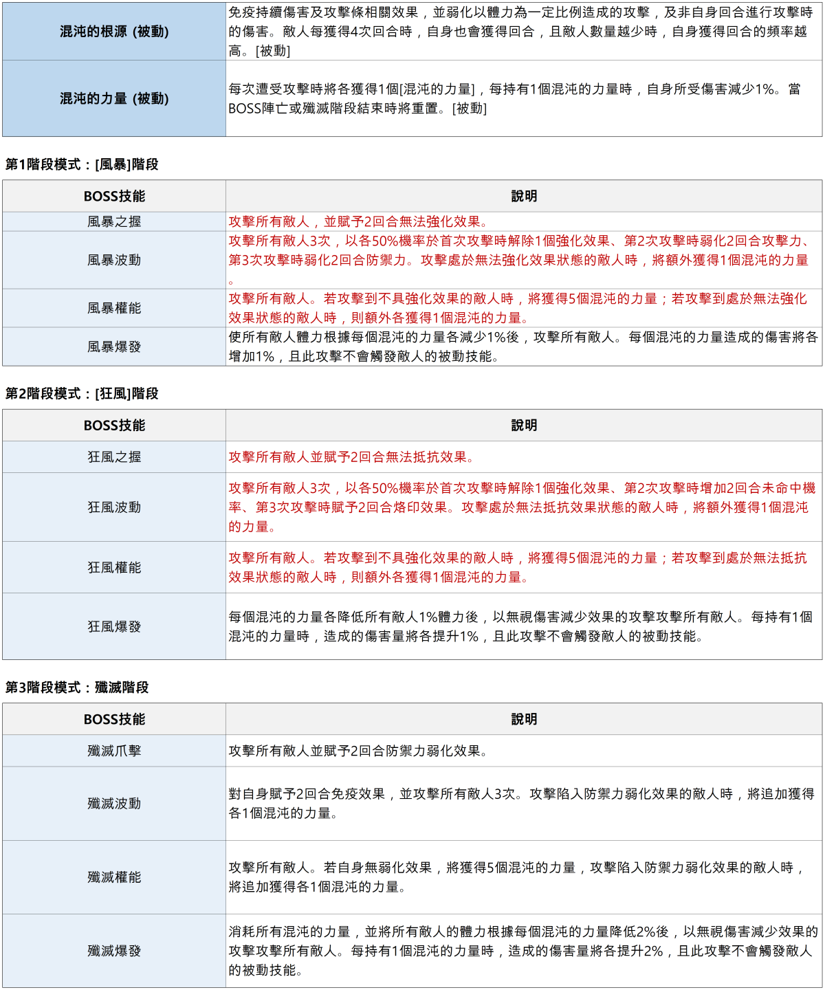 - 2月的混沌神殿BOSS將以風屬性登場,其技能如下。
