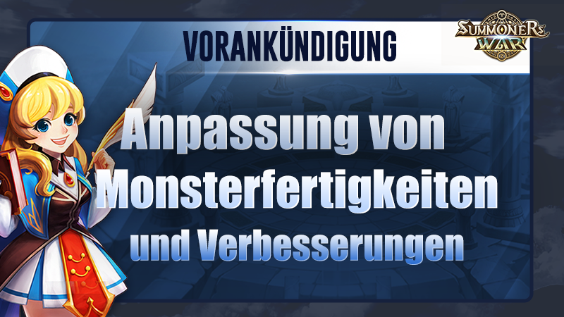 UPDATE [Vorankündigung] Änderung und Verbesserung der Fertigkeiten einiger MonsterHallo von Com2uS! Hier ist ein Überblick über die Änderung einiger Monster-Fertigkeiten, die wir bald durchführen werden. Wir haben die Meinungen unserer User sorgfältig berücksichtigt. Bitte beachtet, dass der tatsächliche Balancing-Patch von den unten stehenden Details abweichen kann. Der Balancing-Patch wird im nächsten Update enthalten sein.