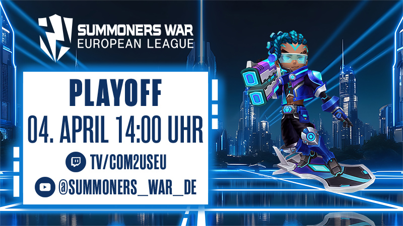 OTHERS Summoners War European LeagueDie Summoners War European League 2026 geht in die finale Phase! Unser 6. Ligatag ist abgeschlossen und nun freuen wir uns auf ein spannendes SWEL-Playoff am 4. April. Verpasst keinen Moment der Action, wenn die verbleibenden 8 Spieler um den Titel des Summoners War European League Champions 2026 kämpfen! - Datum: Samstag, 4. April - Uhrzeit: 14:00 Uhr CEST - Live verfolgen auf: @Summoners_War_DE oder ttv/Com2uSEU Alle Informationen zum Format findet ihr hier. Ergebnisse des sechsten Spieltages: Aktuelle Rangliste: Turnierbaum des Playoff: Wir sehen uns dort!