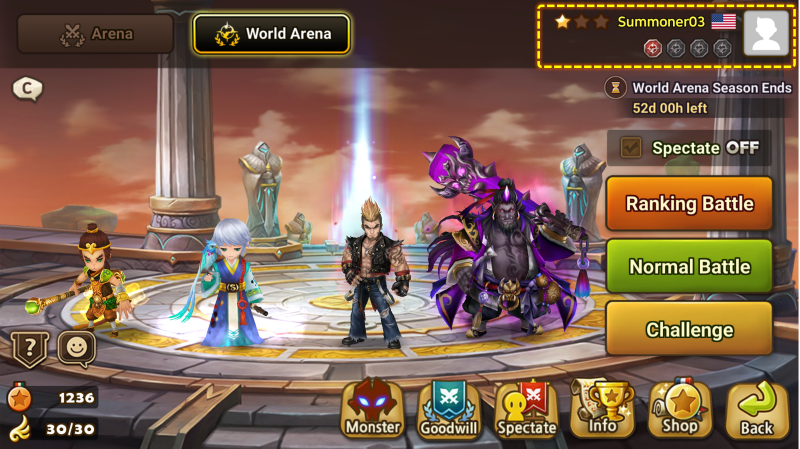 : Beschwörer, die zum ersten Mal an der Welt-Arena teilnehmen, beginnen als Herausforderer★ (0 Siegesmedaillen).