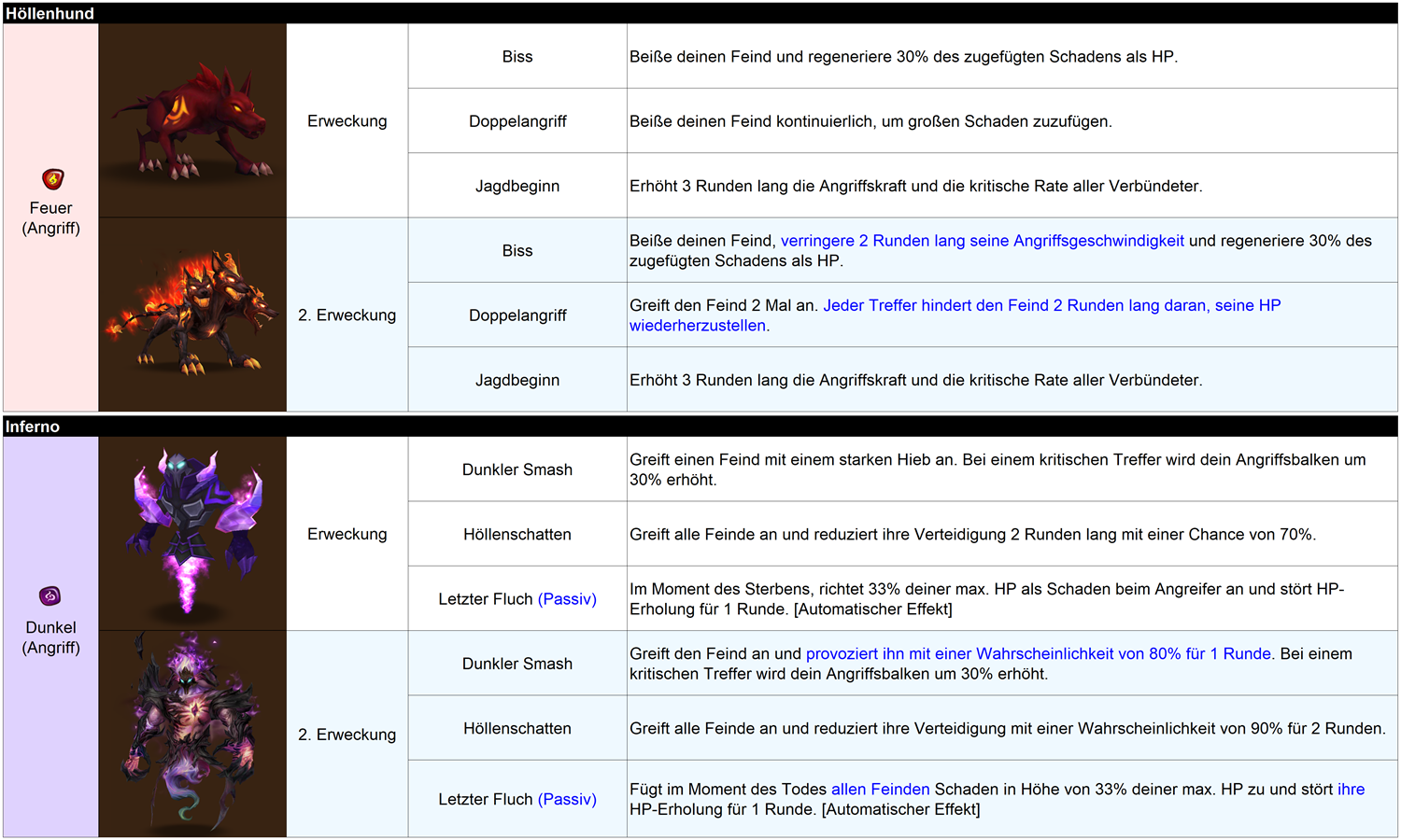 Es wurden dieses Mal 2. Erweckungen für [Höllenhund] und [Inferno] hinzugefügt.