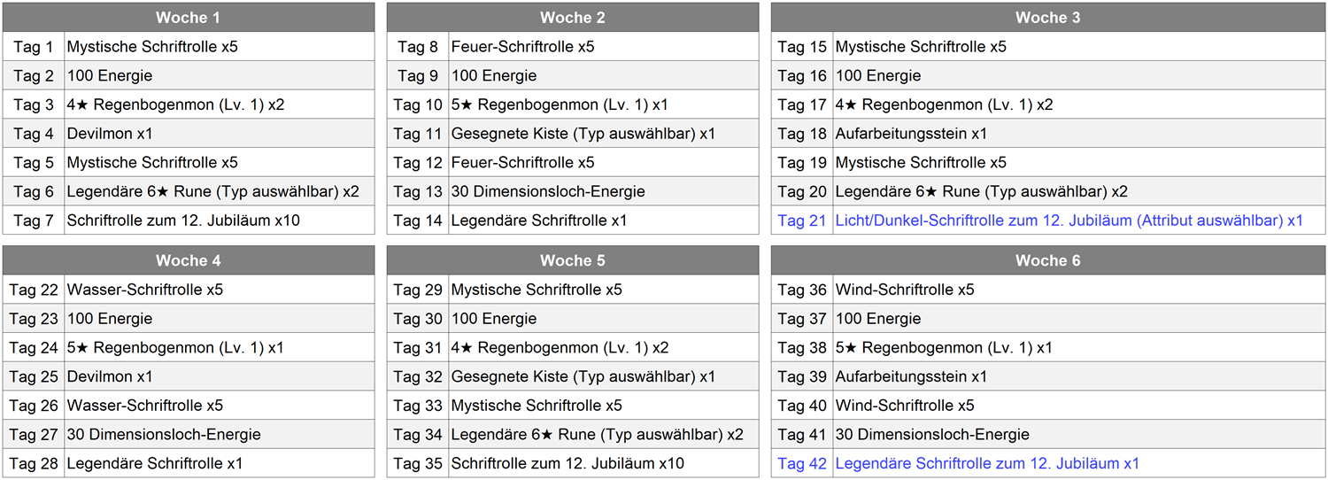 ② Check-in Geschenke zum 12. Jubiläum: Während des Event-Zeitraums können täglich verschiedene Tagesbelohnungen erhalten werden.