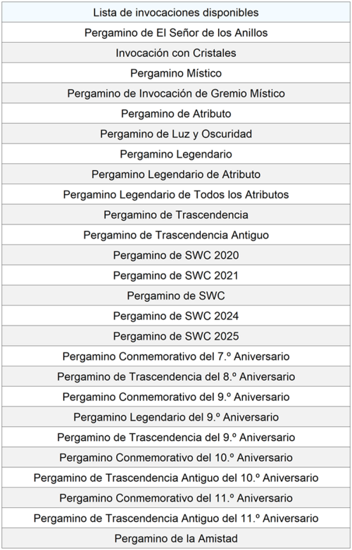 (En la Invocación de Runas Legendarias y en los Pergaminos/Fragmentos con lista fija de invocación, se excluirá la invocación de Monstruos de la colaboración).
