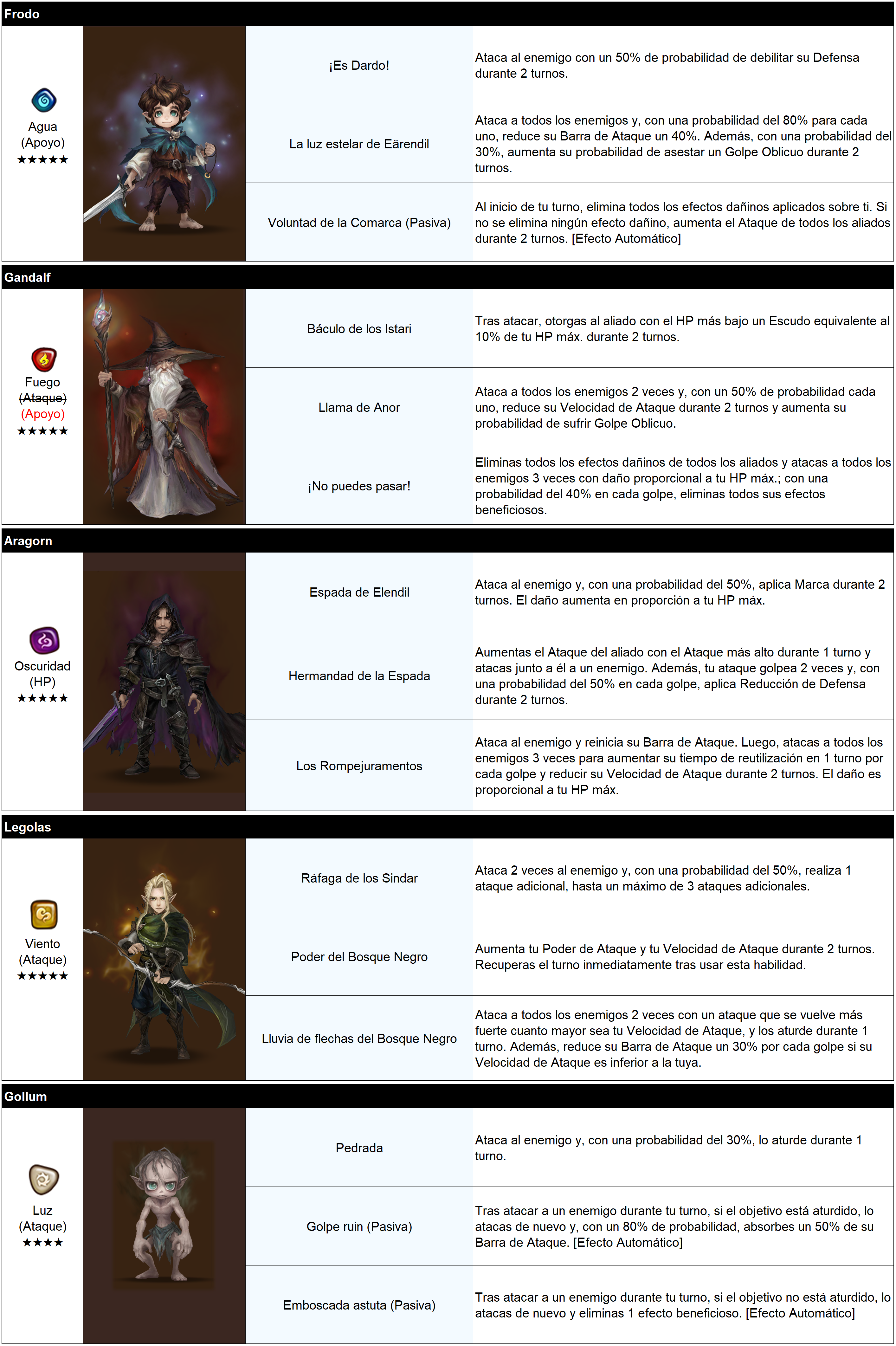 Al igual que en colaboraciones anteriores, los personajes de la colaboración de El Señor de los Anillos se añadirán en su forma Despierta, usando directamente el nombre propio del personaje y sin una forma no Despierta.