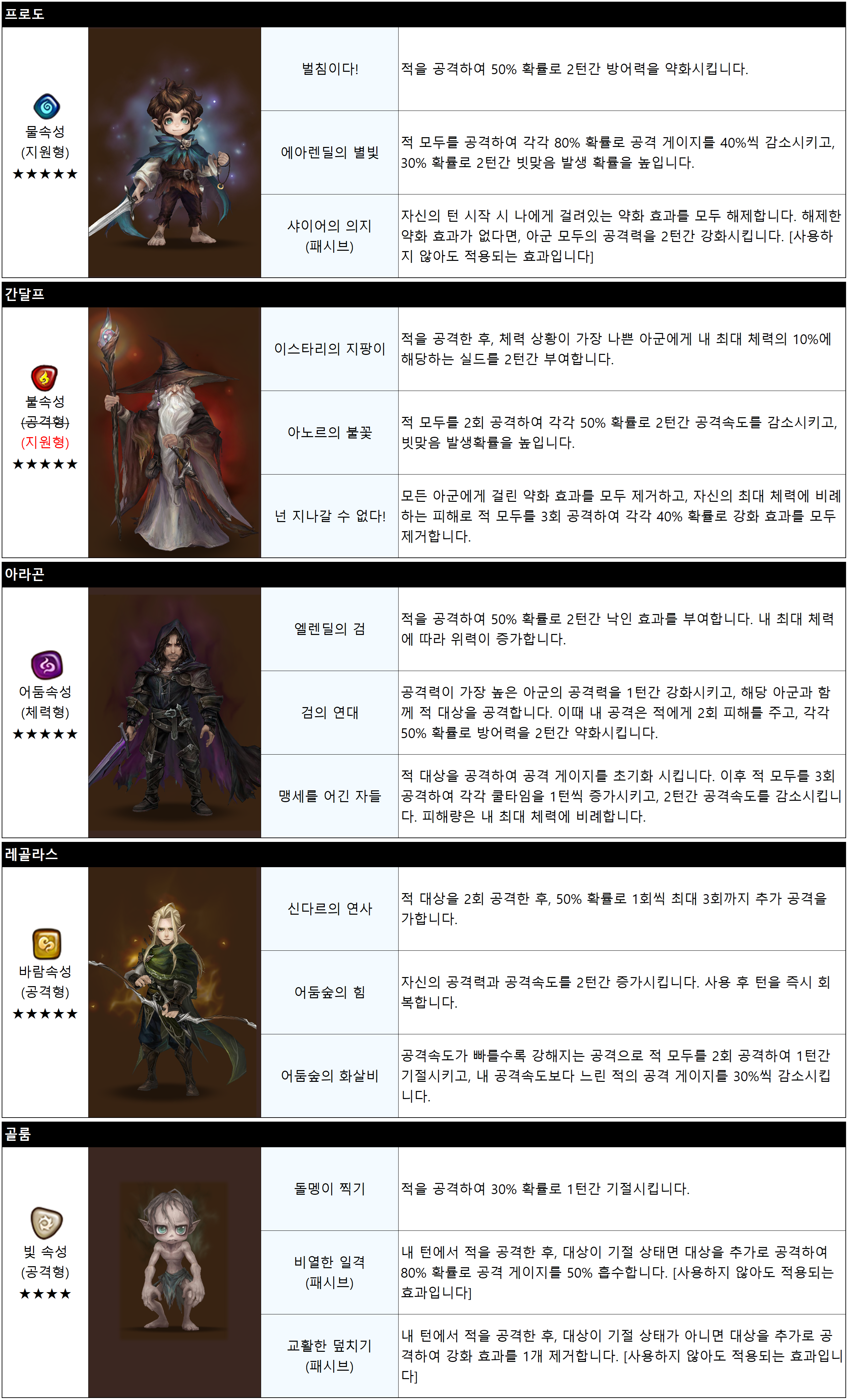 그러면 지금부터 소환사 여러분의 동료가 될 반지의 제왕 핵심 캐릭터들을 소개하겠습니다.