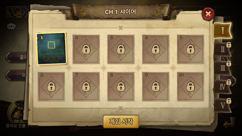 각 챕터의 첫 번째 스테이지를 클리어하면 다음 스테이지를 플레이할 수 있으니, 첫날 모든 스테이지를 클리어하는 것도 가능합니다.