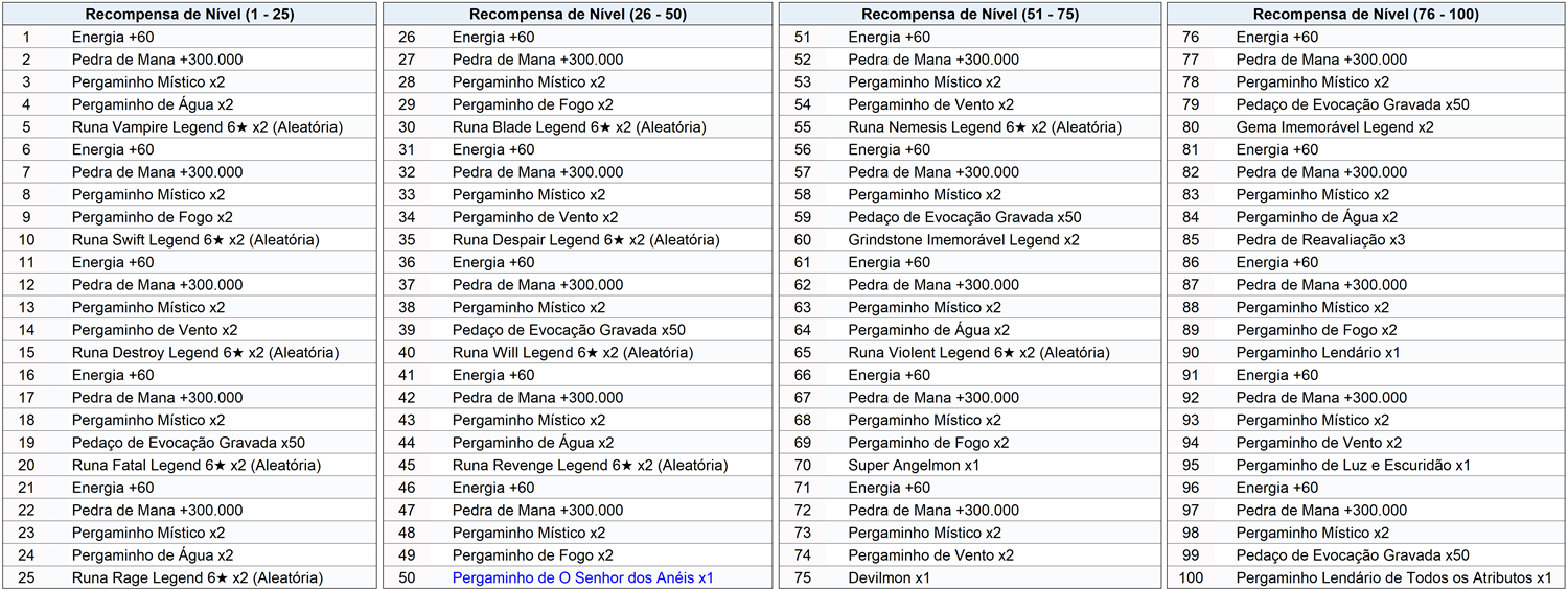 : Ao comprar este item, as recompensas quando você alcançar determinados níveis dobram. Recompensas de bônus para níveis alcançados anteriormente serão concedidas instantaneamente após a compra.