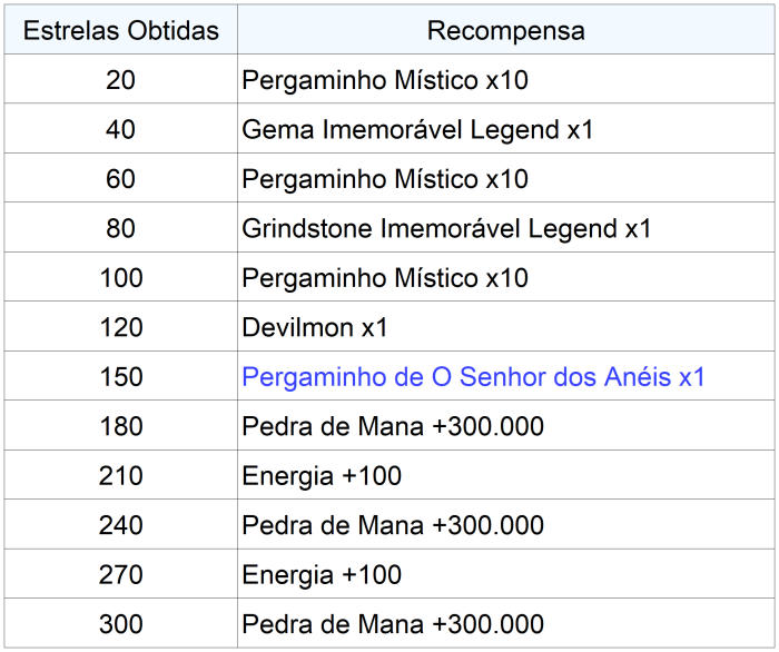 - As recompensas podem ser conferidas a seguir:
