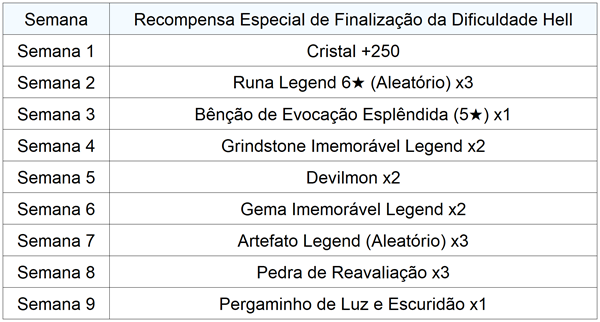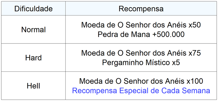 : O evento da semana terminará todo domingo às 23h59 (horário do servidor). As recompensas serão enviadas para a Caixa de Entrada dos Evocadores que possuírem o [Anel de Evocador].