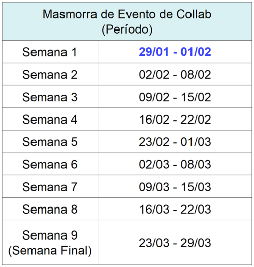 - Período da Collab: após a atualização v9.1.0 em 29/01 até 01/04, 11h59 (BRT/UTC-3)