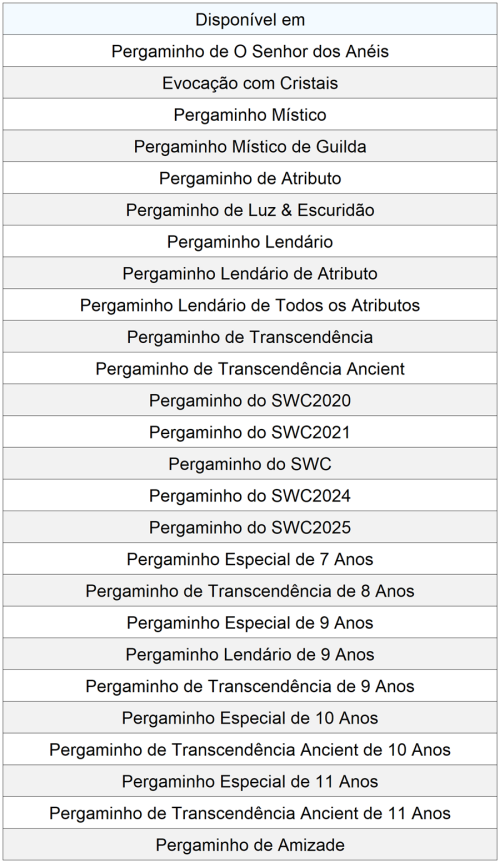 : Todas as segundas-feiras, às 12h (horário do servidor), o [Anel de Evocador] será enviado aleatoriamente.