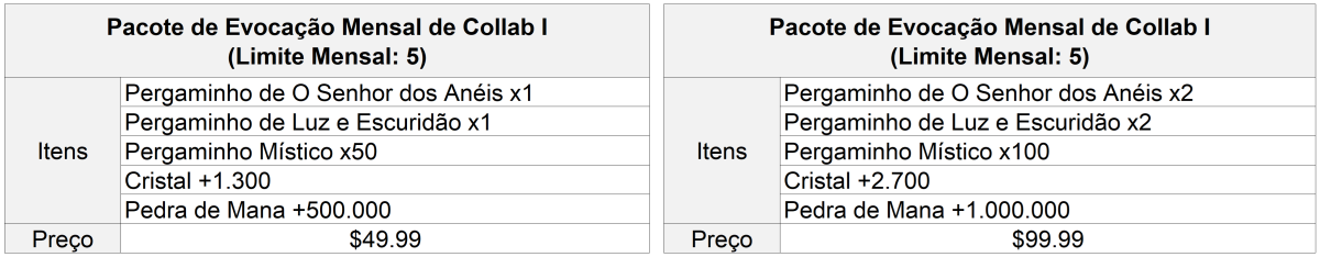 * [Bênção de Evocação e Bênção de Evocação Esplêndida] também se aplicam aos Personagens de Collab.