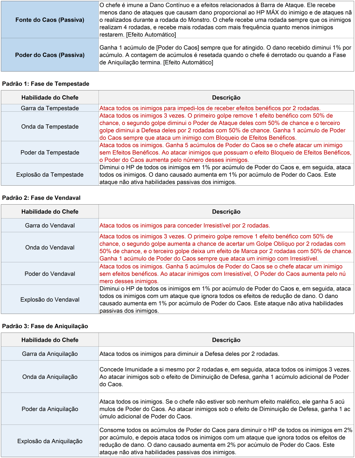 - O Templo do Caos é uma masmorra mensal aberta por uma semana a cada mês, de 0h do primeiro domingo até 0h do domingo seguinte (horário do servidor).